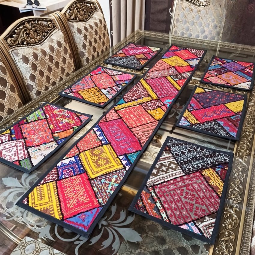 - Sindhi Hand Embroidery with Shisha Table Runner and Place Mat Set